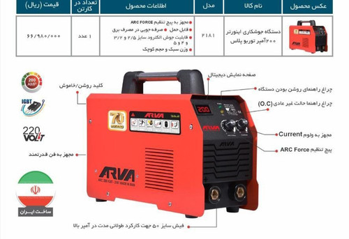 اینورتر اروا 200 امپر مدل 2103 با لوازم کامل