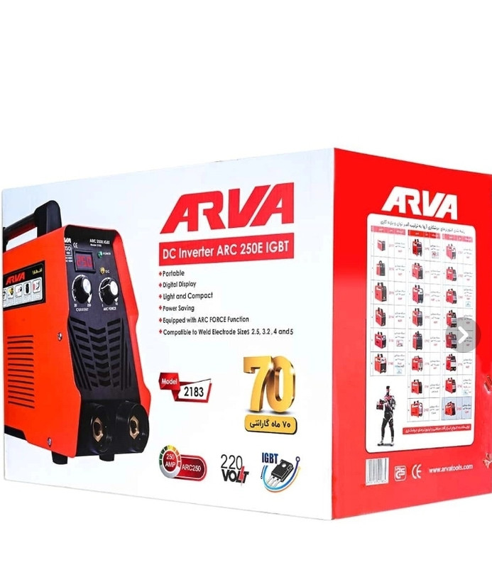 اینورتر جوشکاری ARC ۲۵۰E آروا مدل ۲۱۸۳ (دو ولوم)